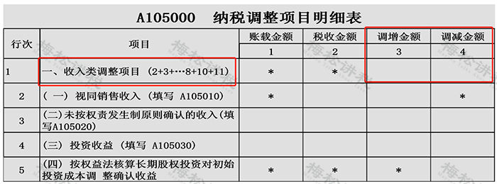 入和其他业务收入)+A105000纳税调整项目明细表第1行纳税调增收入-A105000